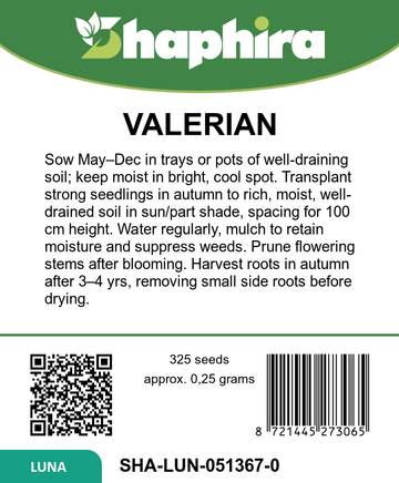 Create a classic herb corner with these valerian seeds (Valeriana officinalis), a graceful perennial herb reaching around 100 cm in height. Ideal for gardeners seeking valeriana officinalis as a long-lasting feature, these valerian seeds perennial herb produce elegant, airy flower stems from June to September. As a tall herbaceous perennial, they bring soft structure and a naturalistic look to mixed borders, cottage gardens and wildlife-friendly plantings. With approximately 1300 valerian seeds per gram, you can establish generous drifts or a dedicated valerian herb patch with ease.