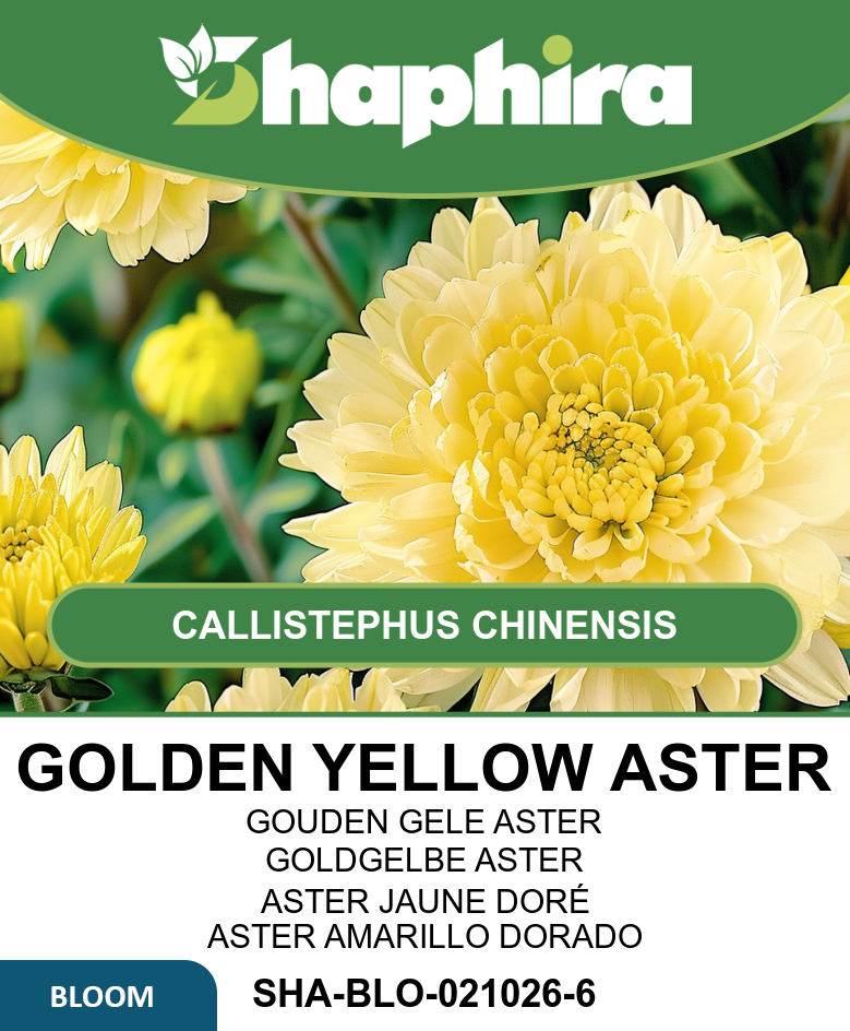 Bright golden yellow Summer Aster with long-lasting double blooms, perfect for gardens and bouquets.
