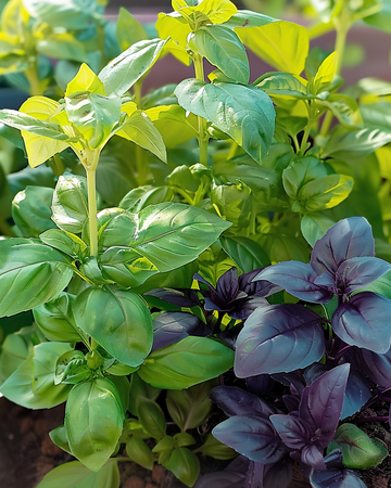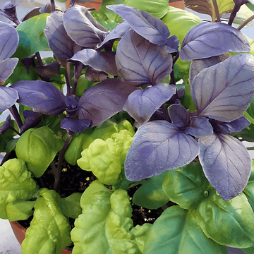 This mix contains lemon basil, cinnamon basil, Dark Opal basil, and classic sweet basil varieties, offering a colorful and flavorful herb garden experience.