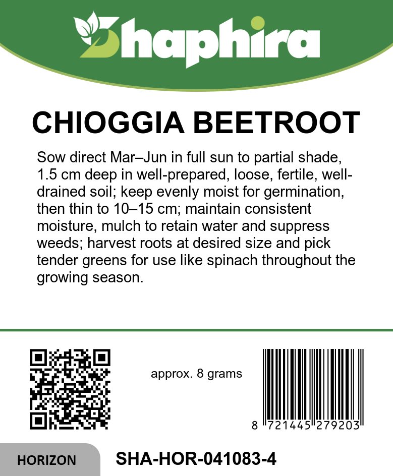 Sow Chioggia beetroot seeds indoors from March to May or directly outdoors between March and June. Plant seeds about 1.5 cm deep in well-prepared, loose soil with good drainage. Space seedlings 10–15 cm apart to allow room for the round roots to develop. Thin seedlings carefully if needed to avoid overcrowding. Maintain consistent moisture during germination for uniform emergence. This variety benefits from full sun to partial shade. Transplant seedlings outdoors after the last frost for optimal growth. Following these steps will help establish a healthy start for your colorful, sweet Chioggia beetroot crop.