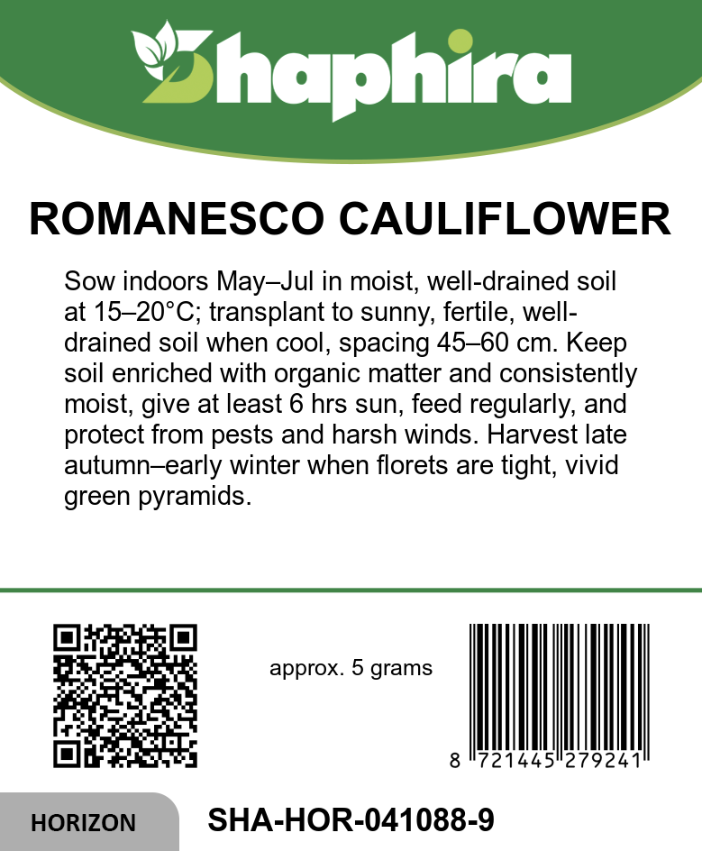 Give your vegetable patch an eye-catching upgrade with Romanesco cauliflower seeds. This striking cool season brassica, botanically known as Brassica oleracea, is prized for its classic Roman green, spiral pyramid-shaped florets that resemble miniature towers. Often referred to as an Italian Romanesco vegetable or tower kale, it combines the familiar growth habit of white cauliflower with a uniquely architectural look. These Romanesco seeds are ideal for gardeners who enjoy growing unusual green cauliflower seeds and want a standout feature in autumn harvest beds. Perfect for kitchen gardens, allotments, or ornamental potagers where structure and colour both matter.