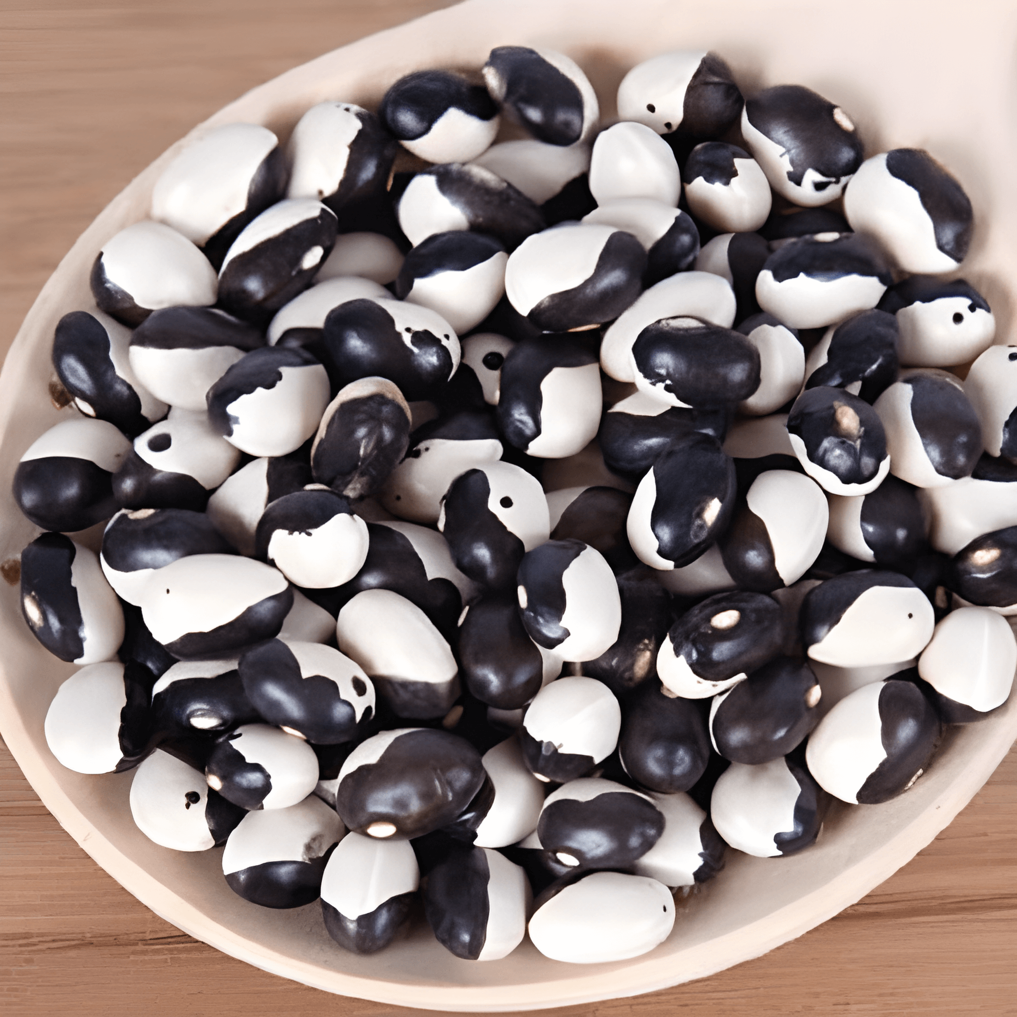 Bring eye-catching contrast to your vegetable patch with pole bean seeds Yin Yang, a distinctive dry bean variety of Phaseolus vulgaris. Also known as yin yang bean seeds or “orca beans,” these black and white bean seeds stand out with their bold two-tone pattern and characteristic “eye” on each side. This dwarf pole bean type forms compact, non-climbing bush plants that fit neatly into small gardens, raised beds, and allotments while still offering a reliable harvest of dry beans from mid-summer onward. Ideal for gardeners seeking unusual, decorative bean seeds with real visual impact in the plot and in storage jars alike.