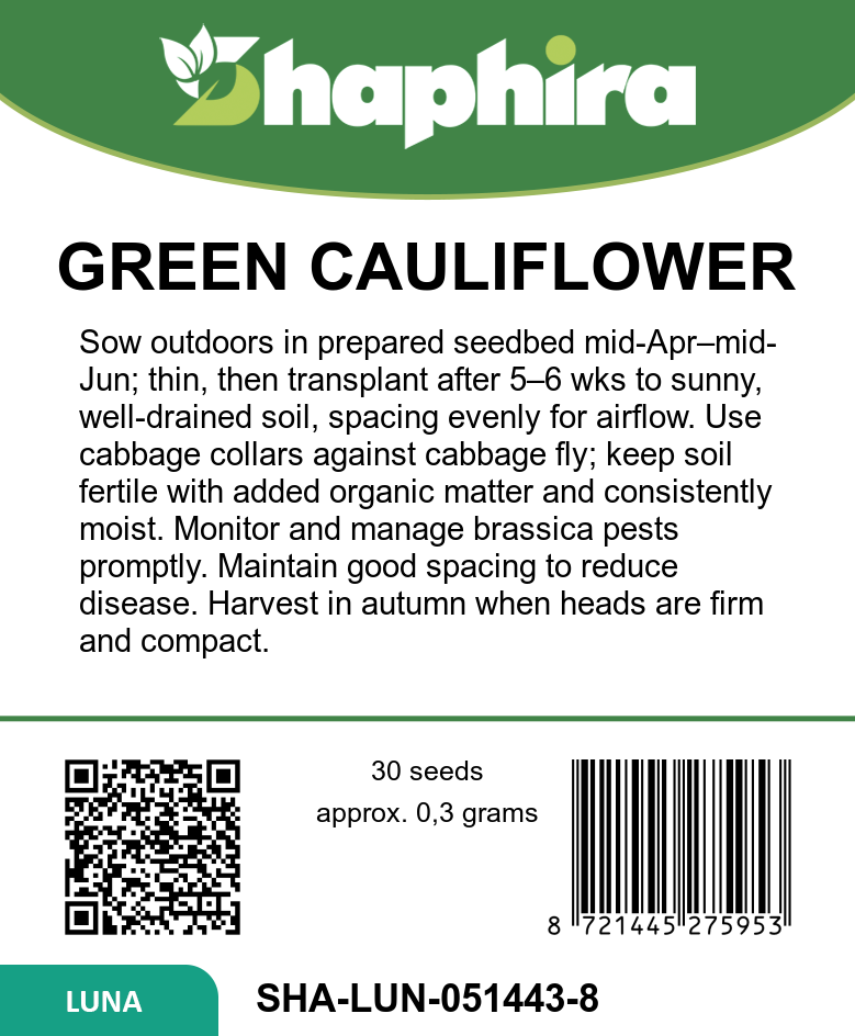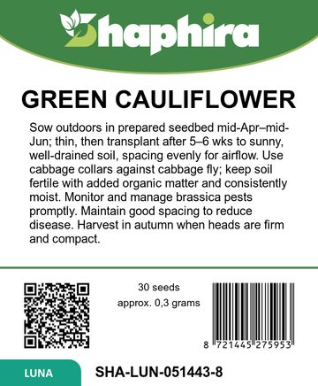 Bring striking structure and color to your vegetable patch with green cauliflower seeds Brassica oleracea White Gold F1 Romanesco. This special Italian green cauliflower forms perfectly arranged, pyramid shaped cauliflower heads made up of countless spiralling florets, creating a highly decorative green-yellow appearance. Ideal for gardeners who enjoy romanesco cauliflower seeds with uniform, reliable performance, this hybrid is well suited to open field cauliflower sowing from mid-spring for an attractive autumn harvest. Green cauliflower white Gold F1 combines the charm of an ornamental vegetable with the practicality of a productive crop.