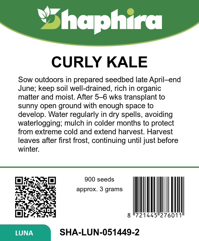 Sow these medium height fine curly kale seeds outdoors from late April to June in a seedbed, then transplant after 5 to 6 weeks for best results. This variety thrives in open ground and benefits from harvesting after the first frost to enhance its flavor and texture. Its natural resistance to common diseases makes it an excellent choice for organic gardens. Enjoy a productive harvest from October through January, ensuring a steady supply of fresh, nutritious kale during cooler months. Regular watering and well-drained soil will support vigorous growth and healthy leaves.