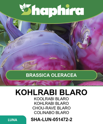 Kohlrabi Blaro seeds produce a blue kohlrabi variety that is ideal for early cultivation, thriving when sown from March to May. They perform well in greenhouses, cold frames, and early outdoor spring planting, allowing gardeners to harvest fresh bulbs from July to September.