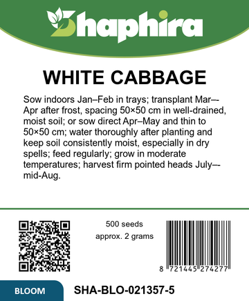 Sow White Cabbage Express seeds indoors from January to February in seed trays or pots. Transplant seedlings outdoors in March or April when the risk of frost has passed. Space plants 50x50 cm apart in well-drained soil that retains moisture to prevent cracking of the heads. Alternatively, sow seeds directly outside from April to May and thin seedlings to maintain the proper distance. Water thoroughly after planting and keep the soil consistently moist throughout the growing period to ensure healthy, compact cabbage heads ready for harvest in early summer.