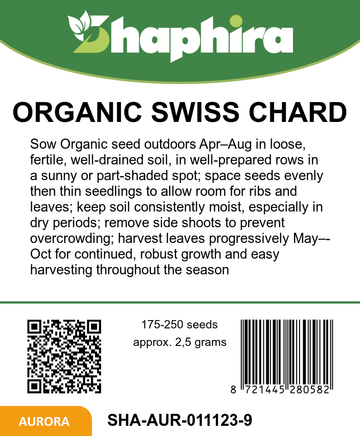 Sow Organic Swiss Chard Seeds Beta Vulgaris White Silver 2 outdoors from April to August in well-prepared rows, spacing seeds evenly. For rib cultivation, thin seedlings to allow room for slender, edible stalks, which can be harvested when mature. If growing for tender leaves, sow until September and thin moderately for optimal leaf development. Seeds can also be started in a seed tray at 20°C before transplanting. Ensure soil is loose and fertile to support healthy germination. Regular thinning encourages robust growth and easy harvesting throughout the season.