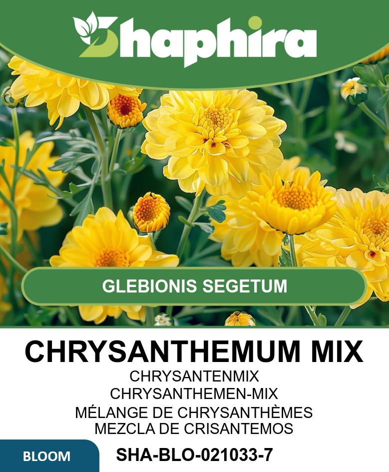 These seeds grow into annual chrysanthemum plants with vibrant yellow-toned flowers, blooming from June through September.