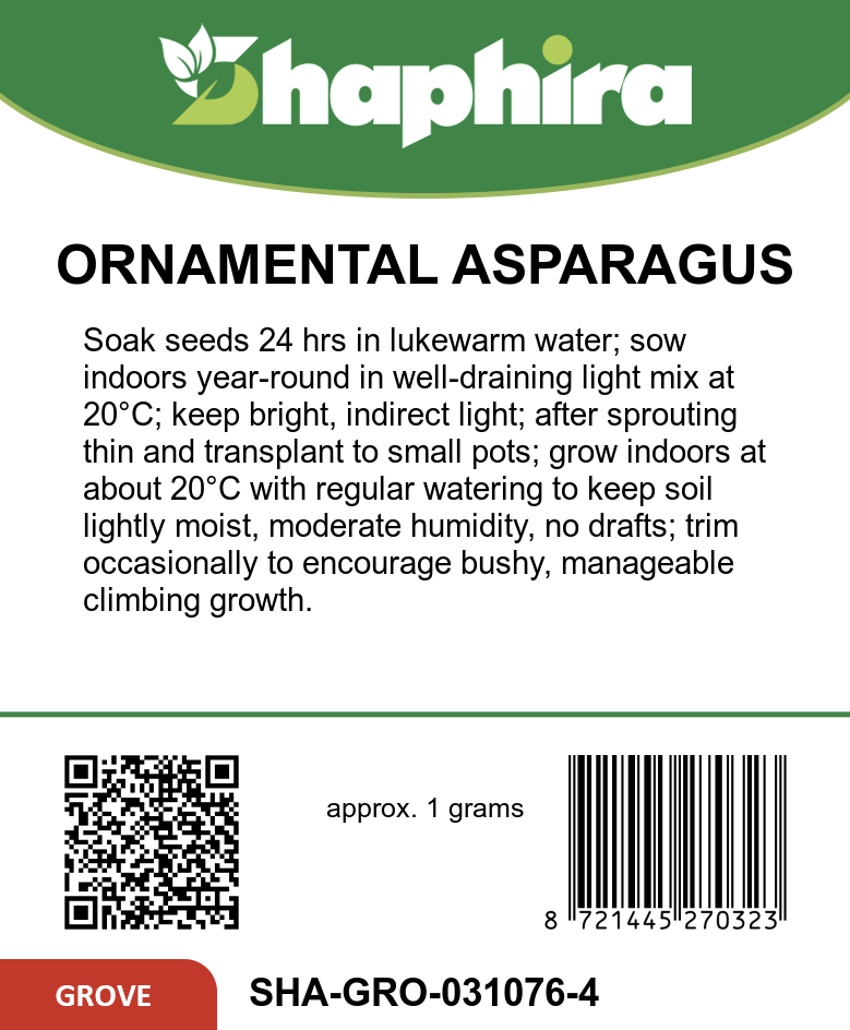 This fast growing asparagus plant is a robust and hardy option for those interested in ornamental asparagus houseplant varieties. It adapts well to indoor conditions and can be sown throughout the year, offering continuous greenery. The asparagus fern indoor seeds provide a rewarding cultivation experience due to their vigorous growth and ease of care. Whether used as a standalone houseplant or as part of mixed displays, this decorative foliage plant brings a touch of subtropical beauty indoors, making it a popular choice for plant lovers seeking elegant, touchable greenery.
