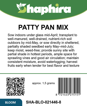 Sow Patisson courgette seeds outdoors from May to July in well-drained, fertile soil enriched with organic matter. Keep the seedbed moist and weed-free during germination, then transplant seedlings to a sunny spot with ample space for growth. Harvest fruits early for tender texture and best flavor; mature fruits work wonderfully for stuffing or decorative uses. Regular watering and mulching help maintain soil moisture and reduce weeds. Rotate crops yearly to prevent soil depletion and encourage healthy plants. This colorful mix offers a delightful addition to summer gardens with diverse hues and versatile culinary options.