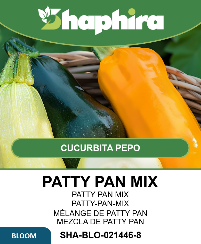 This mix includes vibrant yellow, orange, green, and white patisson courgette varieties, offering a colorful and decorative addition to your garden and dishes.
