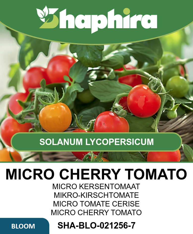 Micro Cherry Tomato plants thrive in sunny locations with consistent watering to keep the soil evenly moist. Pinch out side shoots early to encourage healthy growth and better fruit production. When the plant develops 3 to 4 flower clusters, pinch the top to promote branching. Regularly remove any suckers that appear in leaf axils to focus energy on fruiting. These compact plants are well suited for containers or hanging baskets, making them perfect for balconies or small terraces. Harvest the sweet, juicy tomatoes from mid to late summer for the best flavor and yield.