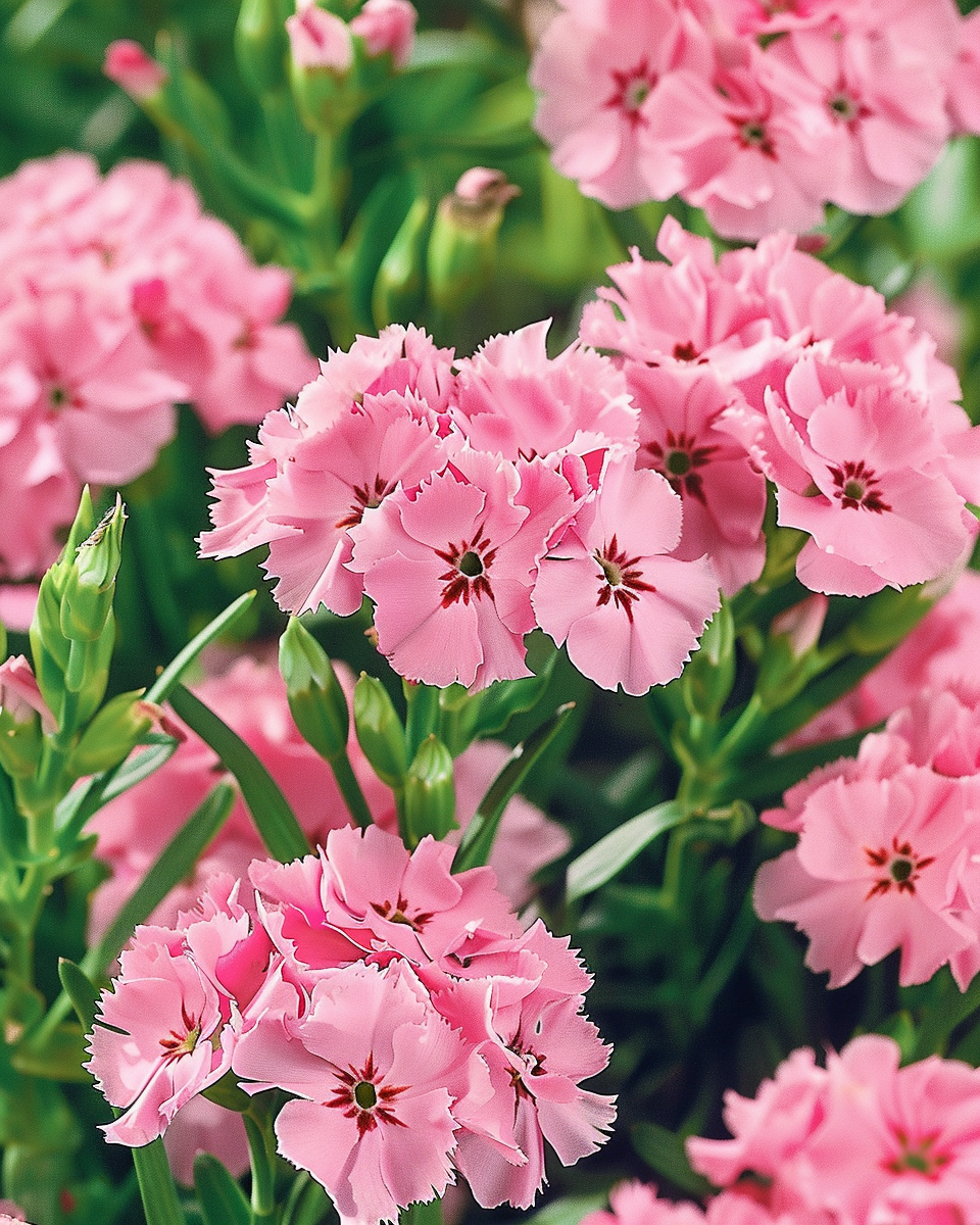 Dianthus Pink Beauty Thousand Beauties thrives best in full sun, enhancing its vibrant pink blooms. These biennials prefer nutrient-rich, well-drained soil but adapt well to various soil types. Regular watering supports healthy growth, while avoiding waterlogging. Deadheading spent flowers encourages prolonged blooming from late spring through summer. Protect plants from strong winds to maintain their moderate 50 cm height and delicate stems. Incorporating these charming flowers into borders or native gardens creates a vivid, continuous display that attracts attention and adds natural elegance to your outdoor space.