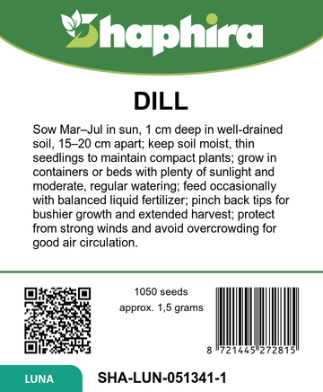 Compact slow-bolting dill seeds ideal for indoor and outdoor culinary herb gardens.