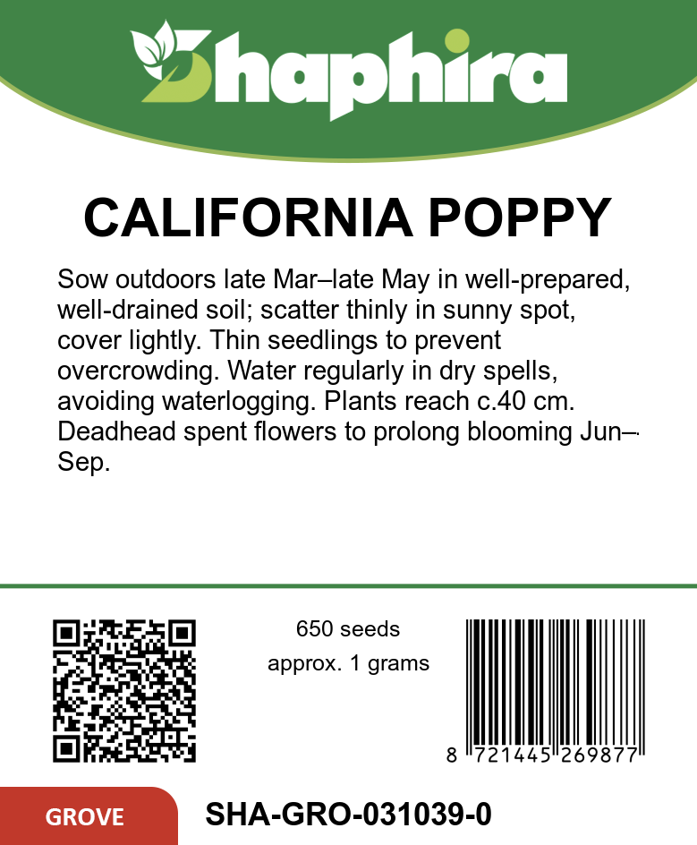 This mixed color california poppy seeds blend grows to around 40 cm, forming neat clumps that work beautifully at the front of sun loving border flowers or along paths and gravel areas. The single flower california poppy seeds produce delicate, cup-shaped blooms with a beautiful satin-like sheen, perfect for mixing with other summer flowering poppies and informal meadow-style plantings. Use these eschscholzia flower seeds to create drifts of colour from June to September, enjoying reliable performance with minimal care. An excellent choice for gardeners seeking an annual poppy mix that brings long-lasting seasonal interest and a light, airy feel to any outdoor space.