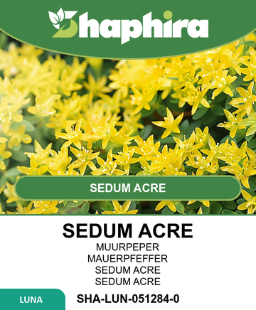 Sow Sedum acre seeds outdoors from May to July in well-drained, sunny spots for best results. This hardy succulent thrives even in poor soils and requires minimal watering once established, thanks to its drought tolerance. Use it as a vibrant low ground cover to create an evergreen carpet that blooms with bright yellow flowers in late spring. For transplanting, start seeds in a seedbed from May to August and move seedlings in autumn. Its compact growth, about 10 cm tall, makes it ideal for naturalizing and suppressing weeds while adding color and texture to your garden.