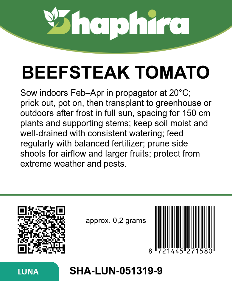 Sow Brutus Beefsteak Tomato Seeds indoors in a propagator at 20Β°C from late February to April for optimal germination. After seedlings develop, prick out and transplant immediately into pots or directly into a greenhouse. For outdoor sowing, plant seeds from April to May under glass to protect young plants. Space plants to accommodate their 150 cm height and support the large fruits. Transplant outdoors or into a greenhouse once the risk of frost has passed, ensuring they receive plenty of sunlight and warmth to encourage healthy development of these impressive, thick-fleshed tomatoes.