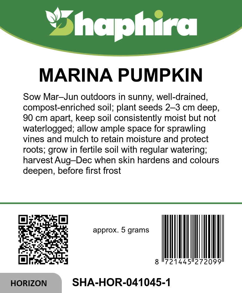 Marina di Chioggia pumpkins thrive in cooler temperatures and benefit from well-drained, fertile soil. Regular watering supports steady growth, but avoid waterlogging to prevent root issues. As a winter variety, it develops best with ample sunlight and space for its sprawling vines. Mulching helps retain moisture and protect roots from early frosts. Harvest fruits from late summer through early winter when the skin hardens and colors deepen. Its sweet, dense flesh is perfect for autumn and winter culinary uses, while edible seeds and flowers add versatility to your garden harvest.