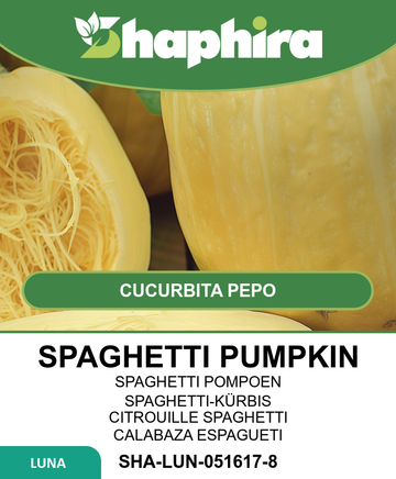 Spaghetti pumpkin seeds producing tender, stringy winter squash with mildly sweet flavor.