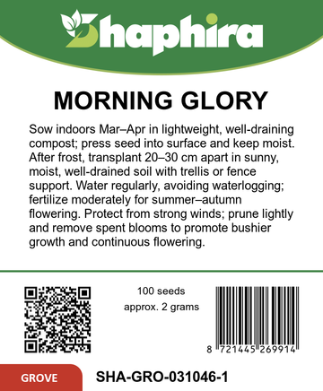 Sow the seeds indoors from March to April in lightweight, well-draining compost. Press them gently into the surface and keep moist until they germinate. After seedlings develop and the risk of frost has passed, transplant them outdoors to a sunny, moist spot with support for climbing.