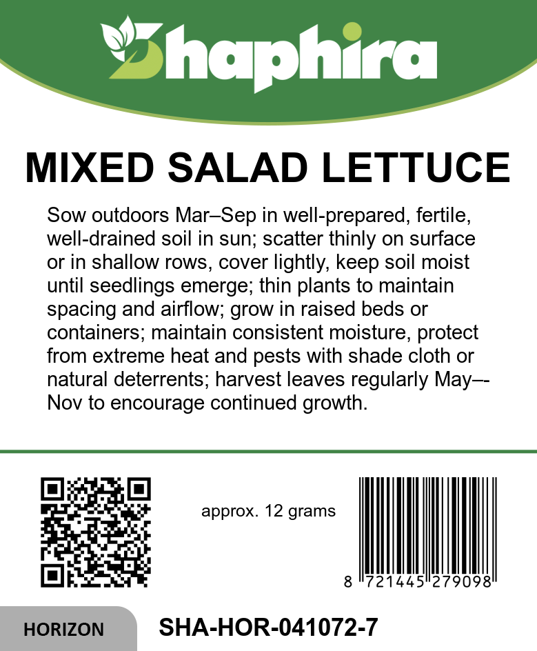 Discover the joy of cultivating mixed salad seeds featuring both red and green varieties of Lactuca sativa L.. These lettuce seeds are perfect for gardeners seeking an easy to grow salad garden seeds option that thrives with spring and summer sowing. Known for their fast growing lettuce characteristics, these seeds produce crisp, colorful leaves that enhance any fresh salad. Regular harvesting ensures a continuous supply of nutritious greens, making them ideal for outdoor salad planting and for those who appreciate a long harvest lettuce option.
