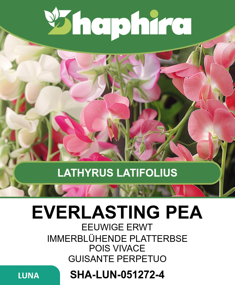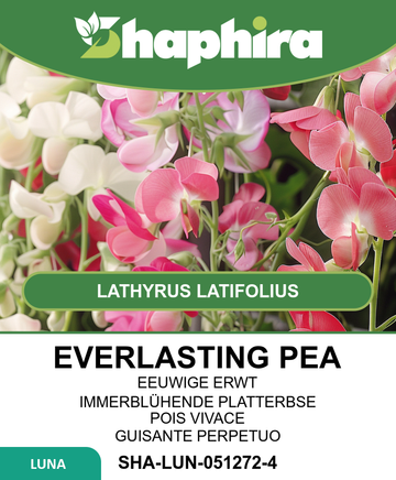 Sow Lathyrus latifolius seeds outdoors from May to July in a well-prepared seedbed. Once seedlings are strong, transplant them between October and November to a location with light sun. Plant near fences, walls, or pergolas, and train the vines along wire mesh for optimal support. Space plants to allow room for climbing up to 180 cm. This perennial vine will produce vibrant clusters of red, pink, and white flowers, ideal for creating lively vertical accents in your garden. Regular planting during the recommended period ensures a stunning summer display lasting through September.