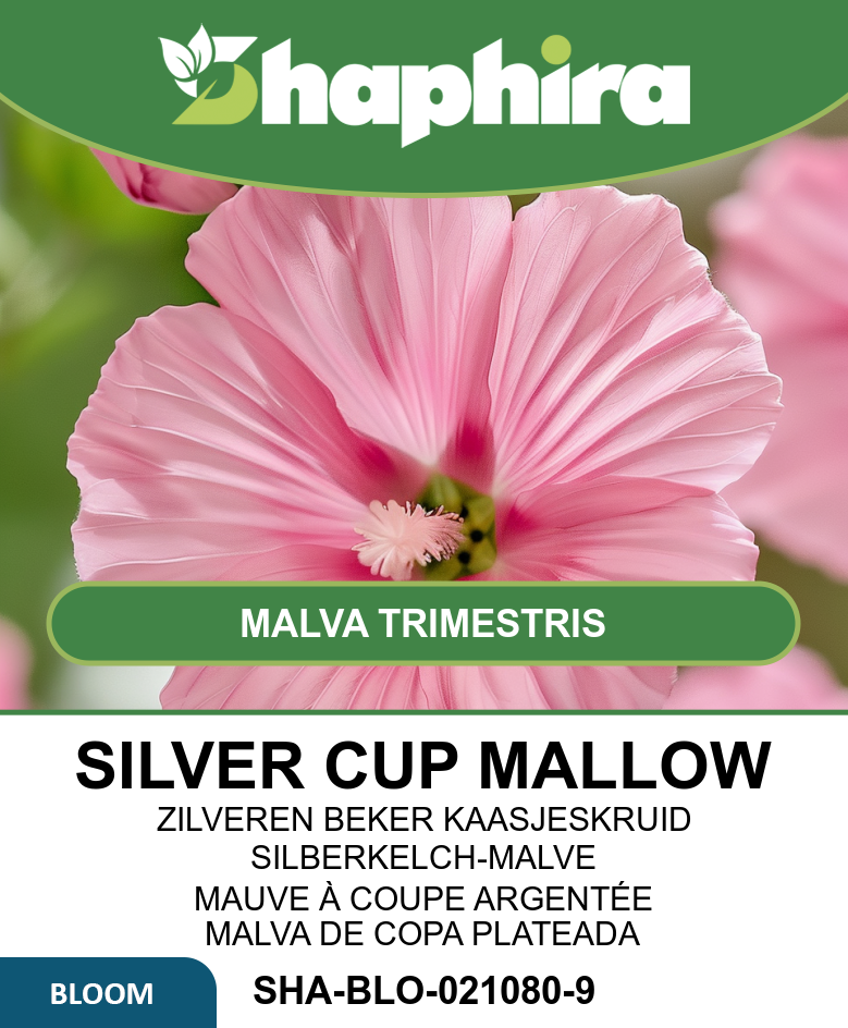 Silver Cup Mallow thrives in a sunny location with well-drained soil. Regular watering is important, but avoid waterlogging. Protect the plants from strong winds and fertilize occasionally with a balanced feed to support flowering.