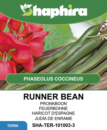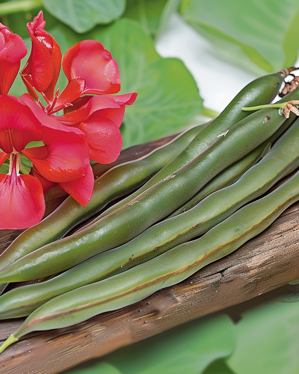 Bronze Runner Beans Seeds (Phaseolus coccineus) produce striking red flowering beans that serve both as an ornamental climbing plant and a source of edible snap beans. They add vibrant color and fresh flavor to your garden and meals.