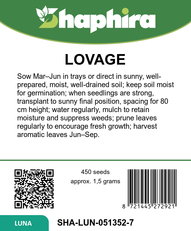 Discover the versatile lovage seeds of Levisticum officinalis, a perennial herb renowned for its intense flavor that resembles Maggi seasoning. These lovage herb seeds are perfect for enhancing soups, stews, meat dishes, and sauces with fresh or dried leaves. Growing up to 80 cm tall, this robust plant thrives in sunny locations and adds a distinctive aromatic touch to your culinary garden. Lovage seeds for seasoning are ideal for gardeners interested in perennial lovage herb seeds that deliver continuous harvests from June through September.