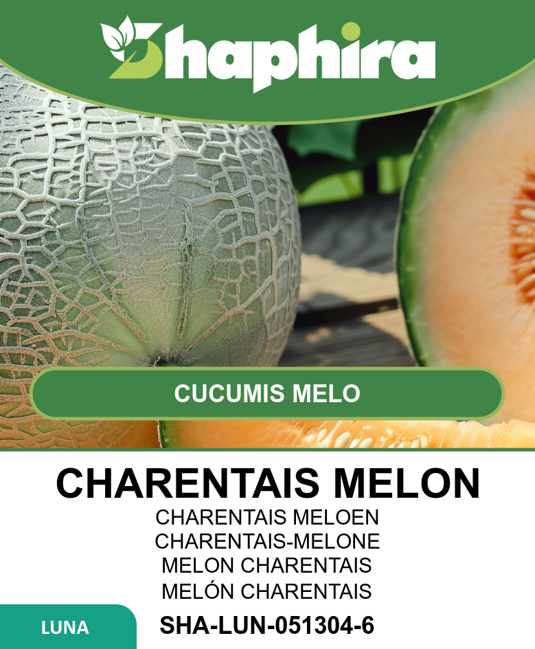 Charentais melon seeds produce an early French variety known for its sweet, orange flesh and distinctive green rind. This variety is prized for its flavor and early harvest period, making it ideal for warm climate cultivation in greenhouses or tunnels.
