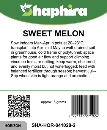 Designed for indoor melon sowing from March through April and suitable for transplanting outdoors from April to May, these early climbing melon seeds ensure a continuous fruiting period extending from July to September. The Cucumis melo L. climbing melon seeds develop into strong plants that support a bountiful harvest and enhance the experience of growing melons in cooler climates. Whether you are focused on indoor melon sowing or greenhouse melon seeds, this variety delivers consistent results and delicious fruit, perfect for gardeners aiming for a high yield melon plant with excellent sugar content.