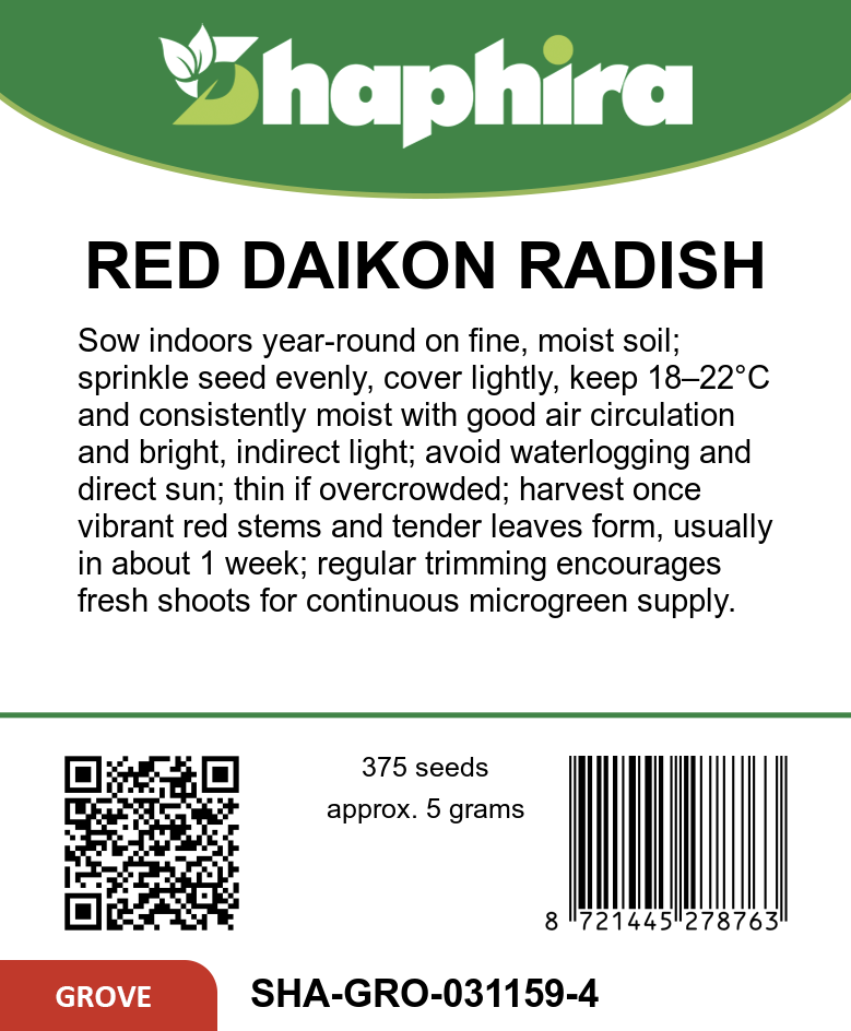 Radish Red Daikon Microgreens are rich in vitamins A, B1, C, iron, and phosphorus, making them a nutritious addition to your meals.