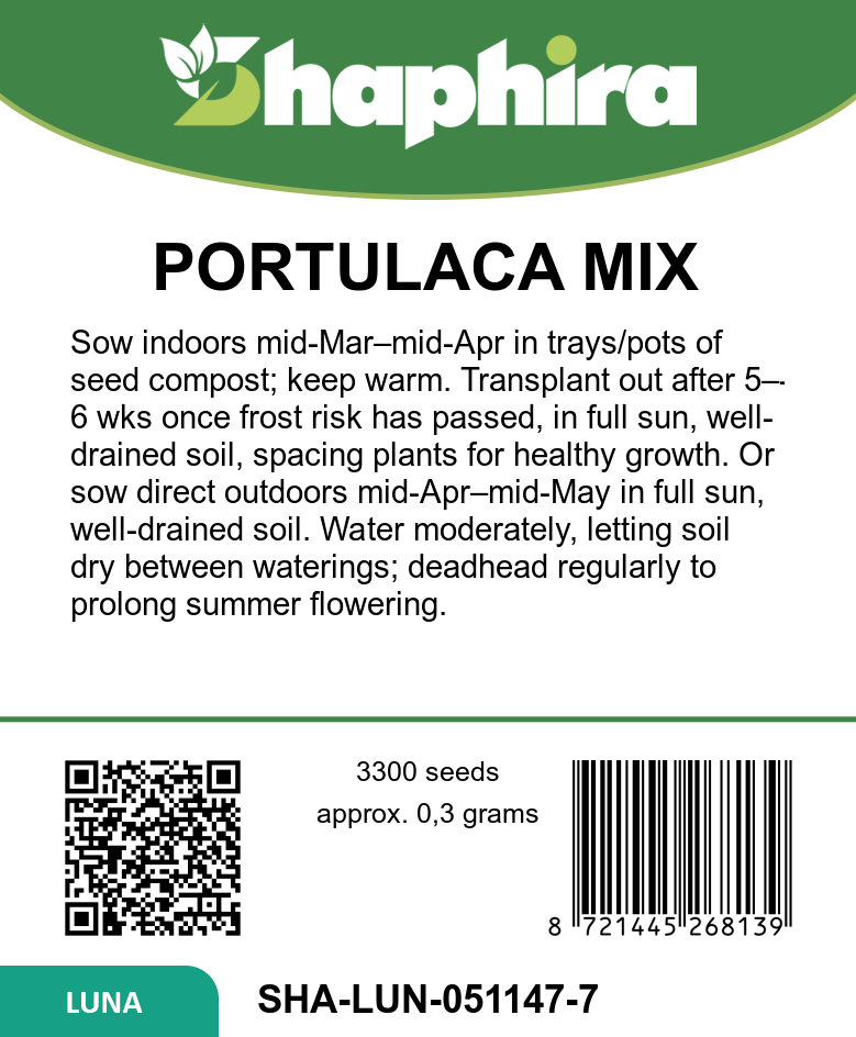 Discover the charm of Portulaca double-flowered seeds, perfect for adding bursts of color to your container garden blooms. These seeds belong to the Portulaca grandiflora species, known for their small, low-growing habit and succulent-like leaves. Ideal for pots and hanging baskets, these annual flowering plants thrive in sunny locations, reaching about 15 cm in height. Their double-flowered blooms create a lush, full appearance, enhancing any rock garden or border with vivid, mixed colors throughout the summer months of July and August.