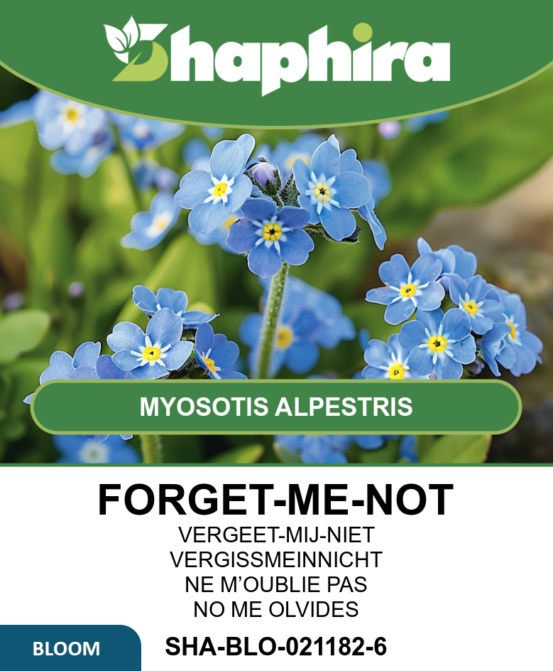 What are the key characteristics of Myosotis alpestris forget-me-not flowers?