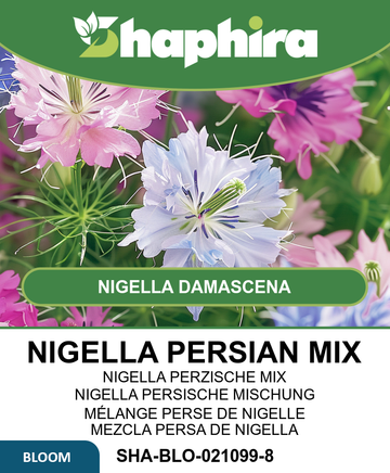 These seeds grow Nigella damascena flowers, also known as Love-in-a-Mist, featuring soft pastel blooms that appear from July through September.