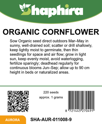 Sow Organic Cornflower Blue Ball seeds outdoors from late March to May in a sunny spot for vibrant, double-flowered blooms reaching up to 90 cm. Scatter seeds widely or in rows, thinning seedlings to encourage strong growth. These annual flowers are perfect for naturalizing and cutting gardens, providing long-lasting, striking blue blooms from June through September. Regular deadheading extends flowering, while well-drained soil supports healthy plants. Enjoy their beautiful, ball-shaped flowers fresh in vases or let them brighten mixed beds with ease throughout the summer months.