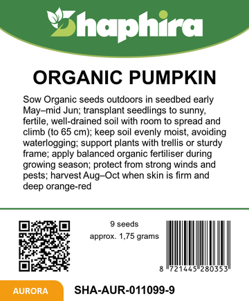 Sow Organic Uchiki Kuri Pumpkin seeds outdoors in a seedbed from early May to mid-June. Once seedlings develop, transplant them into fertile soil in a sunny spot with enough space to support their climbing growth up to 65 cm tall. Ensure soil is well-drained and rich in nutrients for best results. This variety thrives when given room to spread and climb. Regularly check soil moisture, but avoid waterlogging. These seeds will establish well in temperate climates, ready for harvesting pumpkins between August and October.