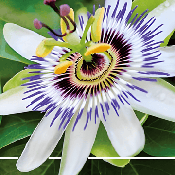 Climbing Passiflora blue seeds producing vibrant purple-white passionflowers for indoor and outdoor gardens.