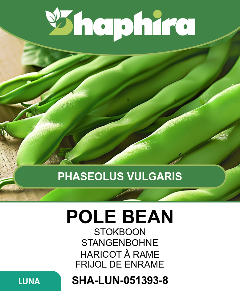 Pole Beans Raadsheer seeds produce early-harvest pole beans with long, tender, and stringless pods. They are climbing beans known for their crisp texture and subtle flavor, ideal for a summer bean harvest.