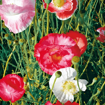 Vibrant mixed poppy seeds for colorful, shade-tolerant garden borders and cut flowers.