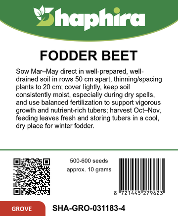 The Beta vulgaris Brigadier variety is valued for its vigorous growth and versatility, offering not only nutritious animal tubers but also edible fodder beet leaves. These leaves serve as an excellent addition to small livestock diets, complementing the main feed with vital nutrients. The sowing window extends from March through May, with harvest times from October to November, aligning with optimal livestock feed crop cycles. With approximately 50-60 seeds per gram, these fodder beet seeds for livestock ensure a plentiful and consistent crop, making them a practical choice for farmers and hobbyists seeking reliable supplementary animal forage solutions.