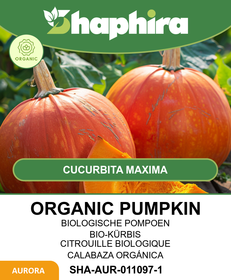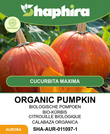 These are organic pumpkin seeds from the Rouge vif d’Etampes variety, belonging to the Cucurbita maxima species, known for producing bright red-orange pumpkins.