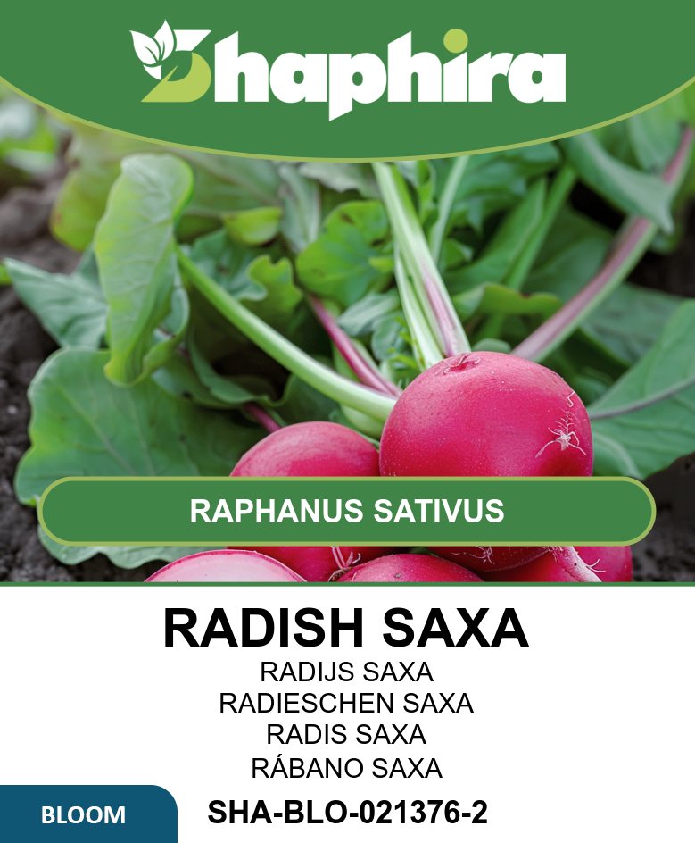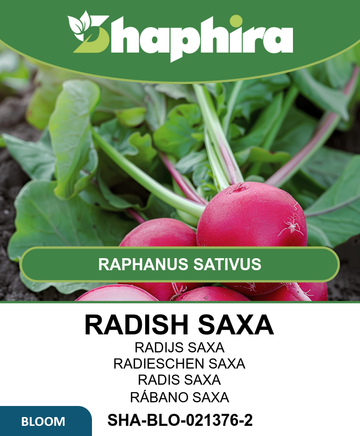 Radish Saxa seeds produce smooth, round roots with crisp white flesh and a mild flavor, making them excellent for fresh salads and culinary use.
