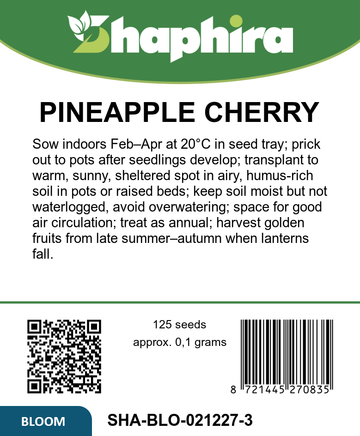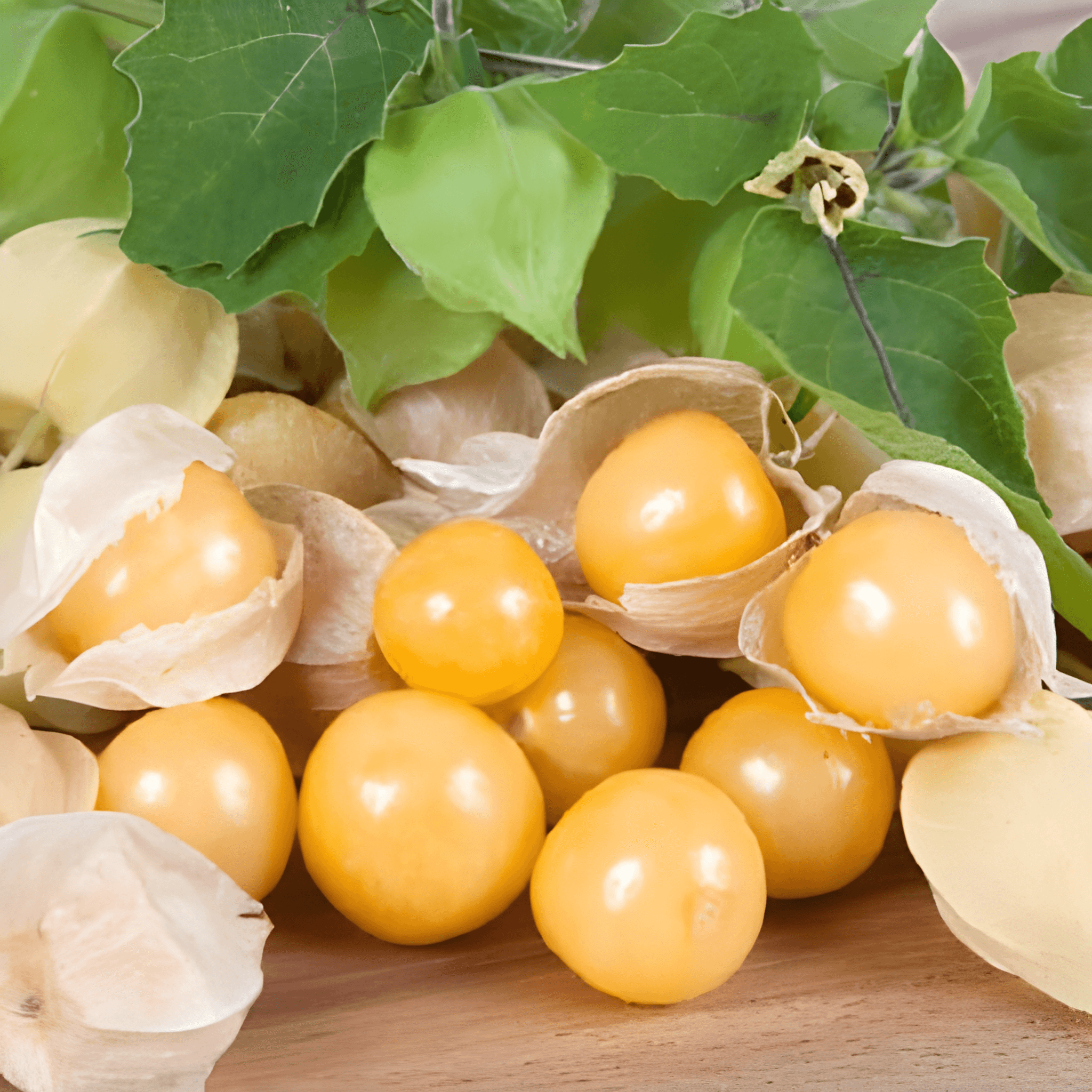 These ground cherry seeds of Physalis pruinosa offer a compact, low-growing variety that starts producing early in the season. Ideal for gardeners who want to enjoy golden yellow physalis fruit even in smaller spaces, this annual physalis plant is well suited to raised beds, borders, and large pots. The plants form decorative papery husks, and the fruits are ready to pick as soon as the lanterns naturally drop from the plant. With approximately 1250 physalis pruinosa seeds per gram, you can create an abundant display from just a small sowing.