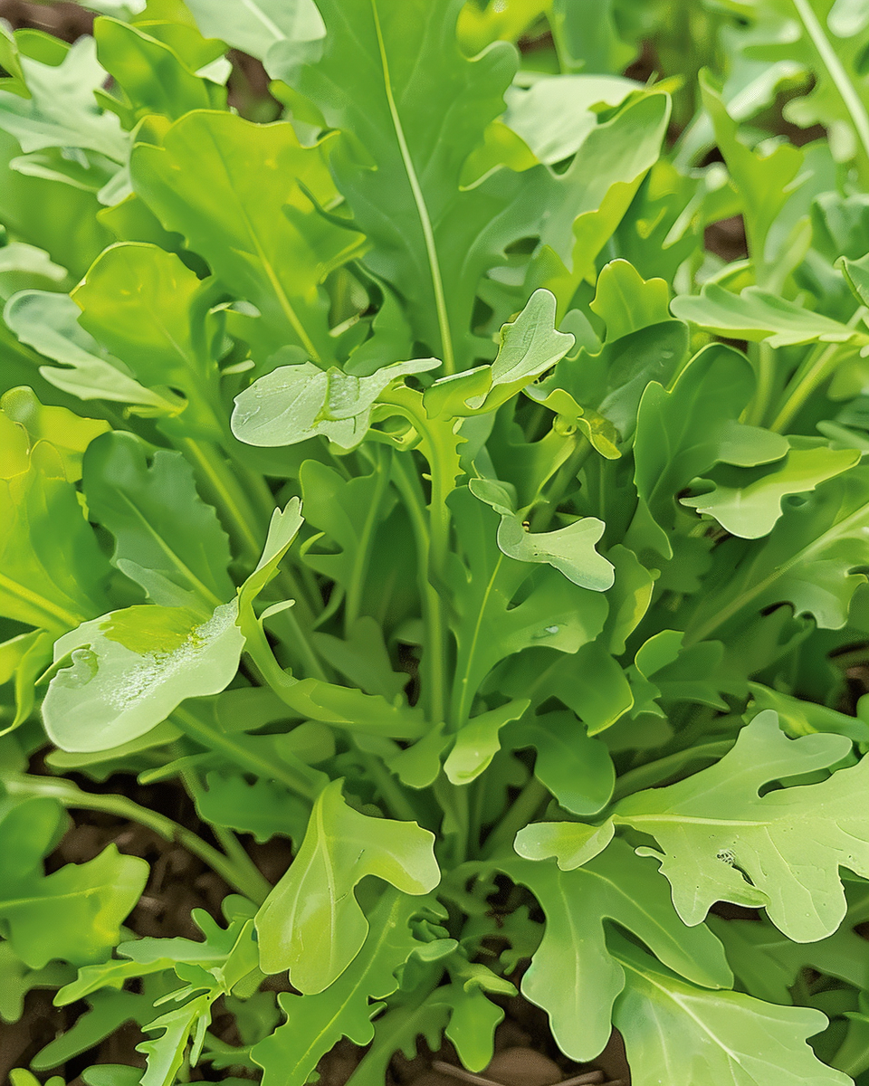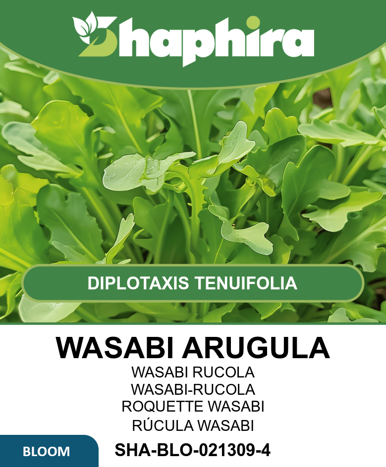 Wasabi arugula leaves have a distinctive horseradish-like spiciness that quickly mellows into the familiar peppery arugula taste, adding a bold kick to salads and other dishes.