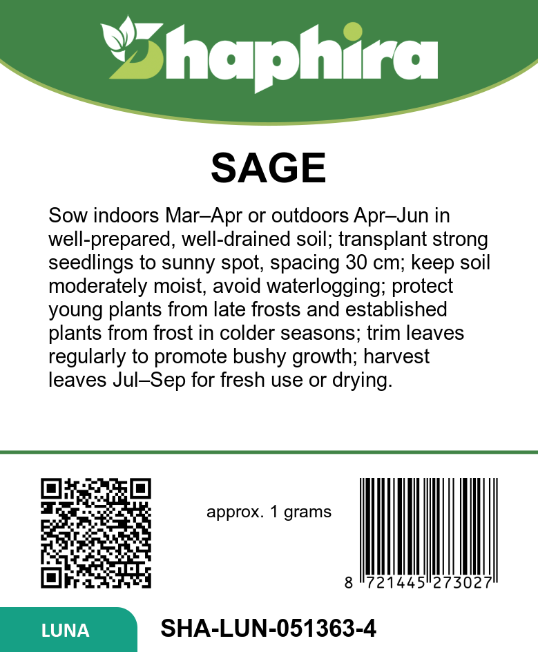 From mid-summer, these blue flowering sage seeds reward you with elegant spikes of blossoms that attract attention in any outdoor space. Use these culinary sage herb seeds to create blue flowering sage plants along paths, in raised beds or as sage seeds for pots on a sunny terrace. As a perennial sage for garden use, plants can provide fresh leaves from July to September and return year after year with proper care. With approximately 130 seeds per gram, these herb garden sage seeds offer generous coverage, making it easy to grow your own sage for seasoning roasts, marinades and hearty vegetable dishes.
