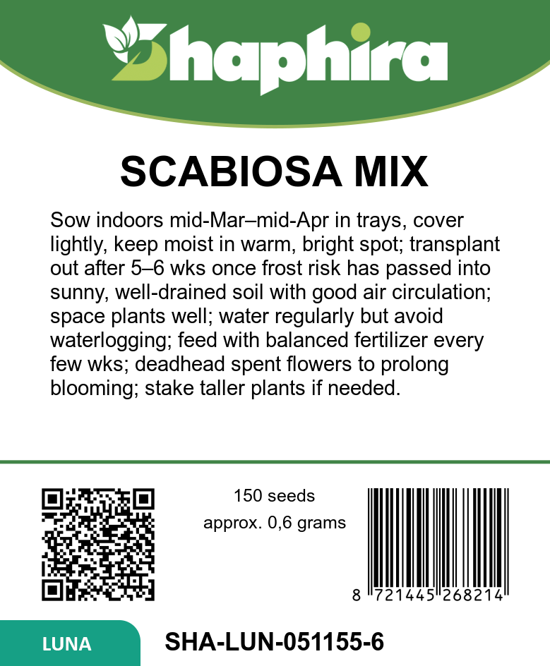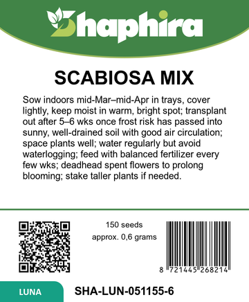 Sow Scabiosa atropurpurea seeds indoors from mid-March to April or directly outdoors from mid-April to May. Transplant seedlings after 5-6 weeks to a sunny location, ensuring well-drained soil for optimal growth. These tall plants, reaching up to 90 cm, flourish in borders and make beautiful cut flowers. Regular watering promotes continuous blooming from July to September. To attract butterflies, avoid using pesticides and provide a natural garden environment. Deadheading spent flowers encourages prolonged flowering, enhancing your gardenβs vibrant summer display with delicate, pincushion-shaped blossoms.