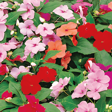 Impatiens Busy Lizzy Baby mixed seeds for vibrant, shade-tolerant garden borders and containers.