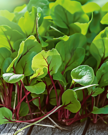These microgreens typically reach harvest size in about three weeks, growing to approximately 20 cm tall. They are ready to be picked when their vibrant veins and tangy flavor develop.