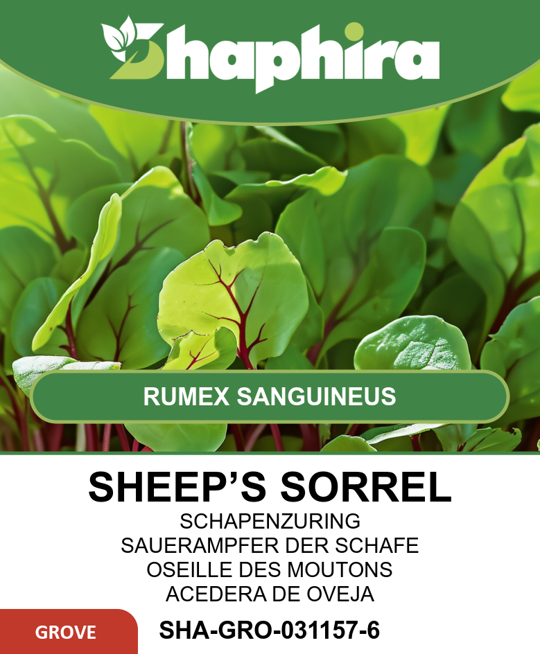 Sheep's Sorrel Microgreens are young edible plants with light green leaves and distinctive blood-red veins. They have a vibrant appearance and a unique sour flavor that enhances salads, soups, eggs, cheese, and fish dishes.